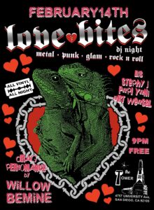 Love Bites – DJ Stephy J, Papi Yani, Art Weasel – Willow Bemine – Free! 02/14/20268:00 pm - 11:45 pm Love Bites – DJ Stephy J, Papi Yani, Art Weasel – Willow Bemine