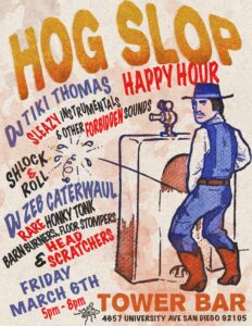 Hog Slop – DJ Zeb Caterwaul & Tiki Thomas Happy Hour 03/06/20266:00 pm - 8:00 pm DJ Zeb Catterwaul & Tiki Thomas
