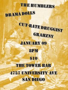 The Humblers, Drama Dolls, Cut-Rate Druggist & Grahzny 01/09/20268:00 pm - 11:45 pm The Humblers, Drama Dolls, Cut-Rate Druggist & Grahzny $10