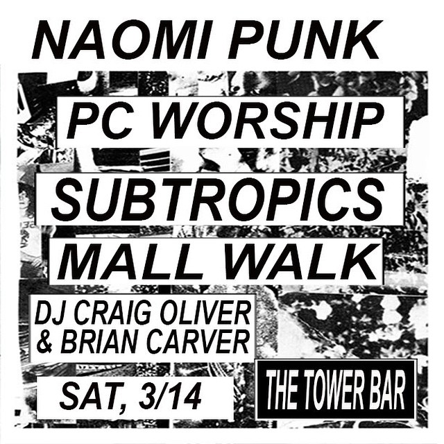 11007989_1591666654405003_363079977_n Published March 14, 2015 at 640 × 640 in 11007989_1591666654405003_363079977_n ← Previous Next → Tonight: Naomi Punk, PC Worship, Subtropics, Mall Walk & DJs Craig Oliver & Brian Carver. 9 pm.