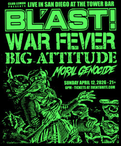BL’AST!, War Fever, Big Attitude, Moral Genocide 04/12/20266:00 pm - 9:45 pm BL’AST!, War Fever, Big Attitude, Moral Genocide https://BLASTSD.eventbrite.com