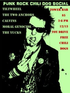 Hot Dog Chili Dog Social matinee Toy Drive with JCCC, Suede Denim Secret Police, Moral GenocideThe Calvins, Moral Genocide, The Yucks