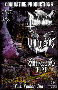 Combative Productions presents Plague Bearer (Seattle, Blackened Death), Vaulderie (Tacoma, Blackthrash), Suppressive Fire (San Diego, Blackthrash)